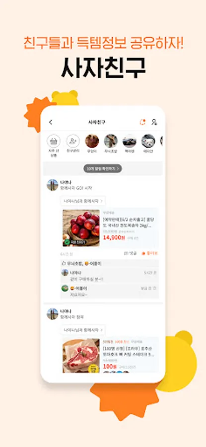Saja Market social function open! You can share shopping information with your friends and make purchases together!