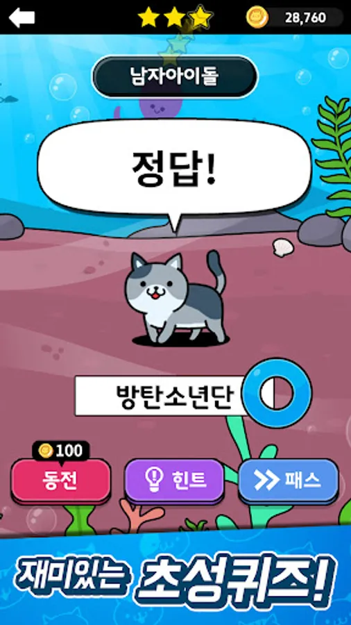 If you clear the first quiz, you will get a cat !!