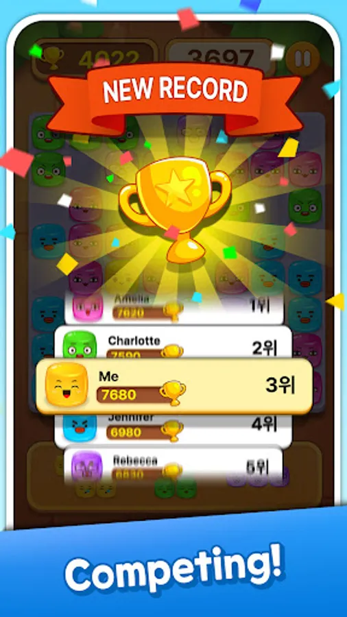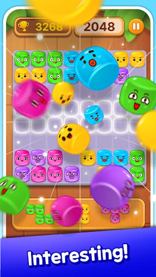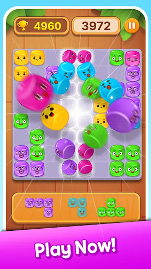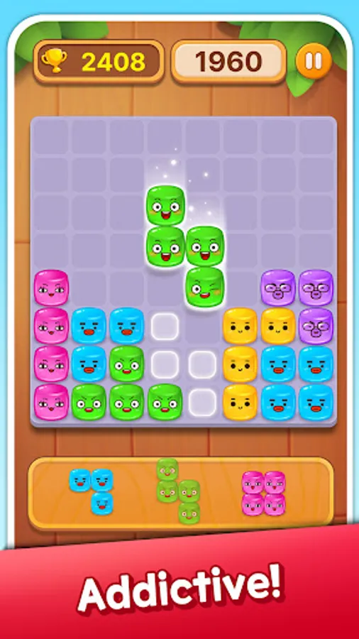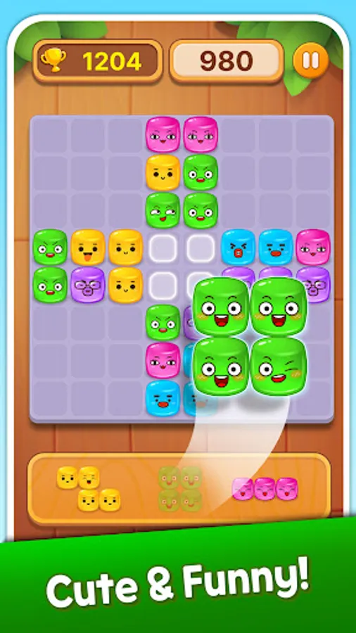 Adventure into a cute puzzle world with soft jelly blocks with funny faces right now!
