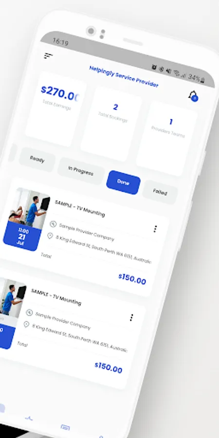 The Provider app provides options to choose your task as per their schedule, complete the task and get paid weekly with direct deposit to your account. Helpingly charges a small booking fee which is more competitive than our competitors.