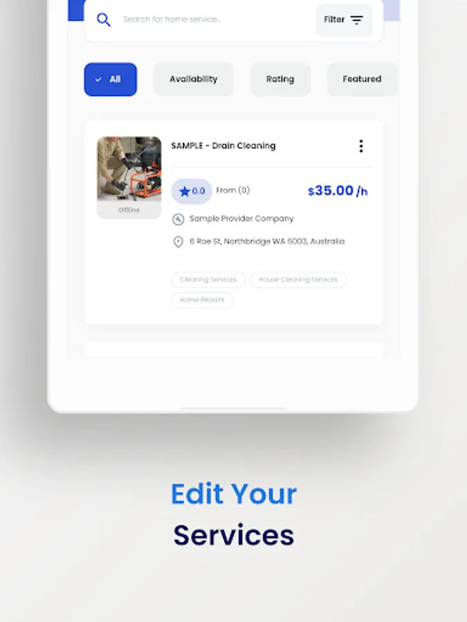 Providers can add various types of services. Moreover, Service provider can update and delete any Services, check all the Pending Jobs, Upcoming Jobs, Accepted jobs, declined jobs. They can check the profile and get feedback as well.