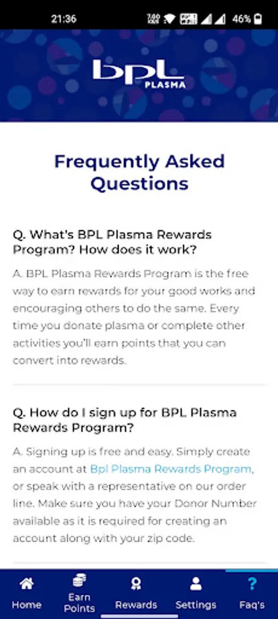 BPL Plasma Rewards Program Screenshots