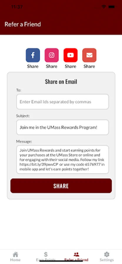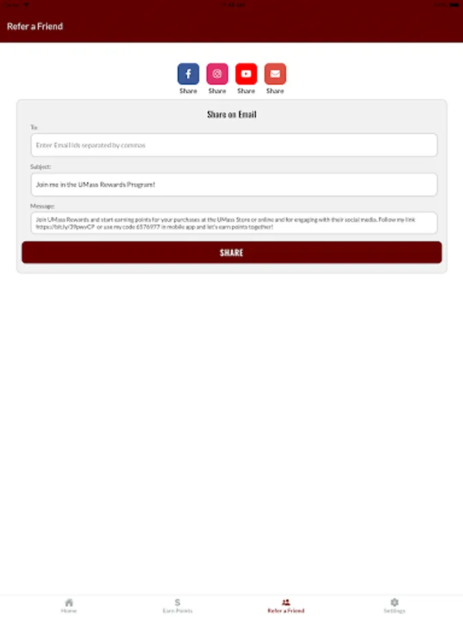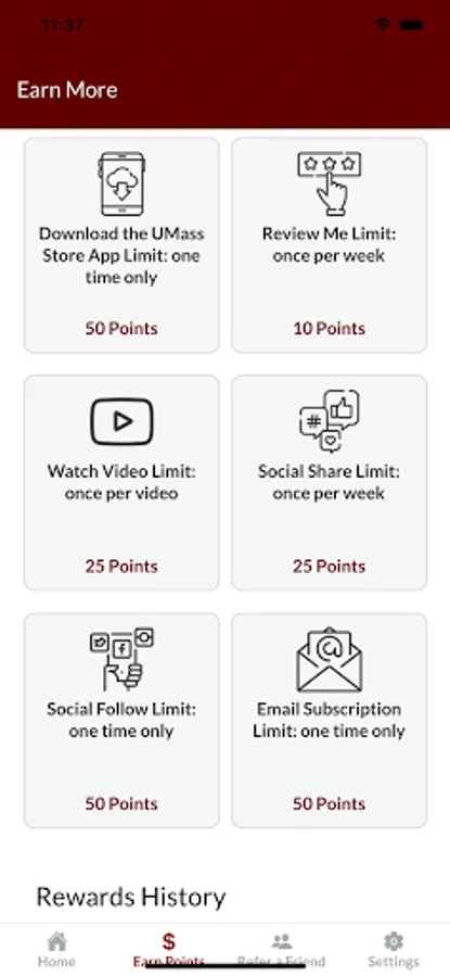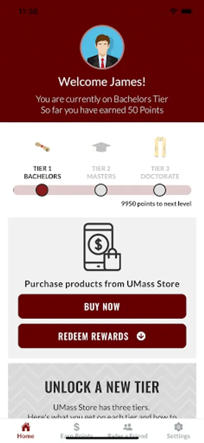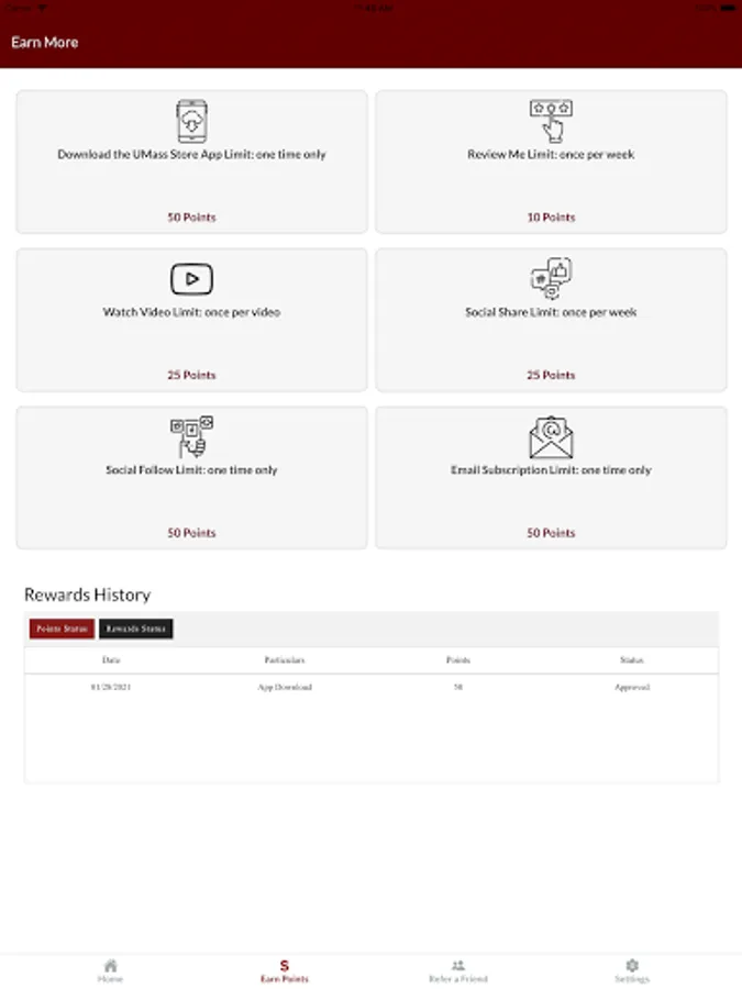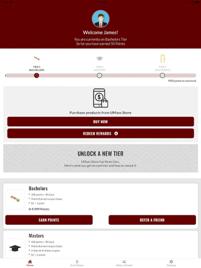 Rewards app for UMass Store. Users can purchase products from UMass Store and can earn points for there purchase in this app. These points can be used to redeem UMass In-Store or Online Vouchers.