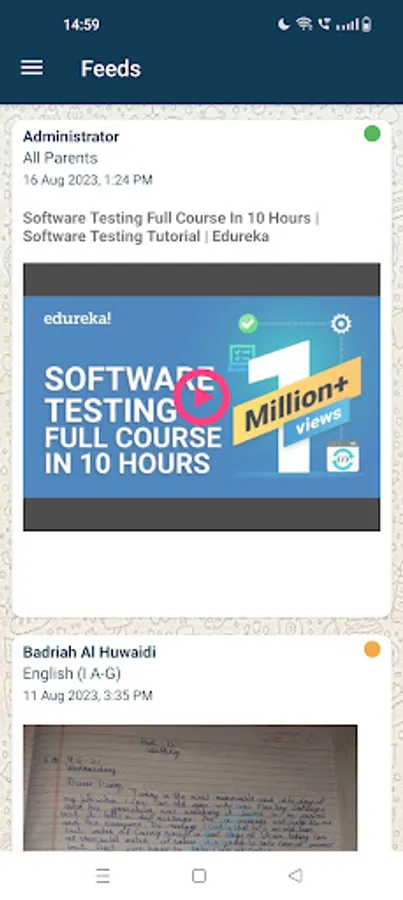Groups: Users can create and attach a video, Image, or simple text and can post it in groups for various classes. Parents can see all the posts that have been posted in the subject group and general group.