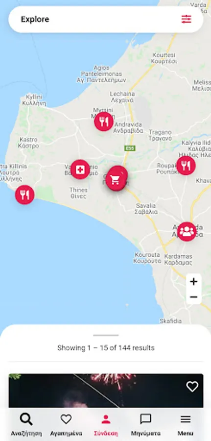 Discover Cafes - Bars, Events, Sights, Commercial Stores of the Prefecture of Ilia, easily and quickly with Buzzy Fester.