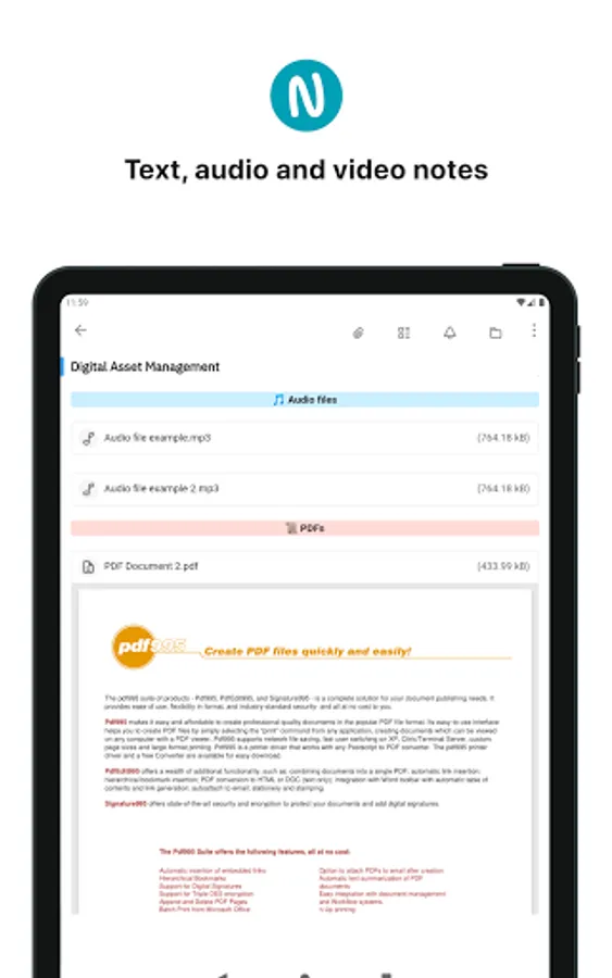 - Scan and digitize any paper documents and pictures using the camera device. The text recognition feature will let you work with scanned files as well as regular notes.