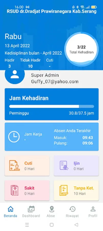 The mobile attendance application for RSUD dr. Dradjat Prawiranegara Kab. Attack for Attendance activities, using geotagging technology, so that employee attendance at each location can be known accurately, and monitored in the form of Dashboard and Timesheet attendance.