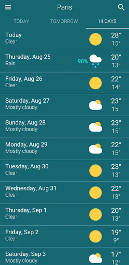 Weather is a beautiful and clean app, designed to be as simple to use as possible. With just one click you can check the weather for today, tomorrow and the forecast for the next 14 days.