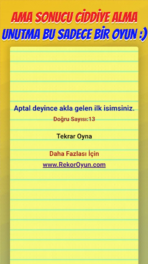Important Note: This is not a real test. It is a game developed just for fun. Please do not take the results seriously.