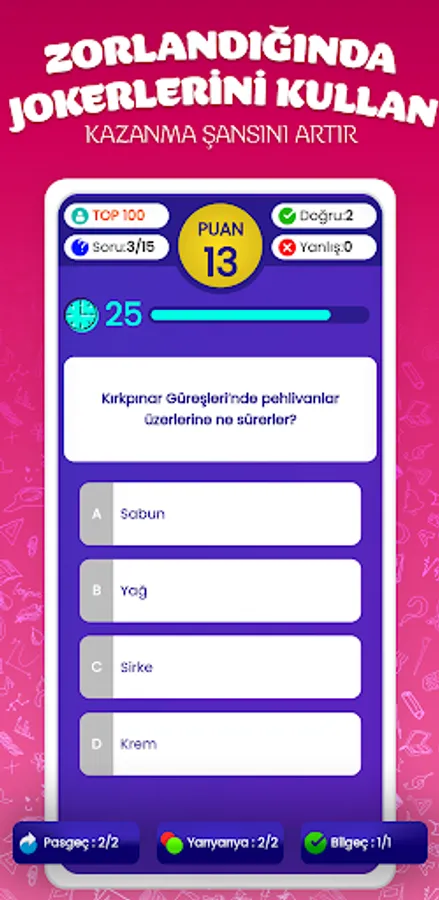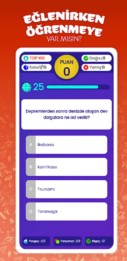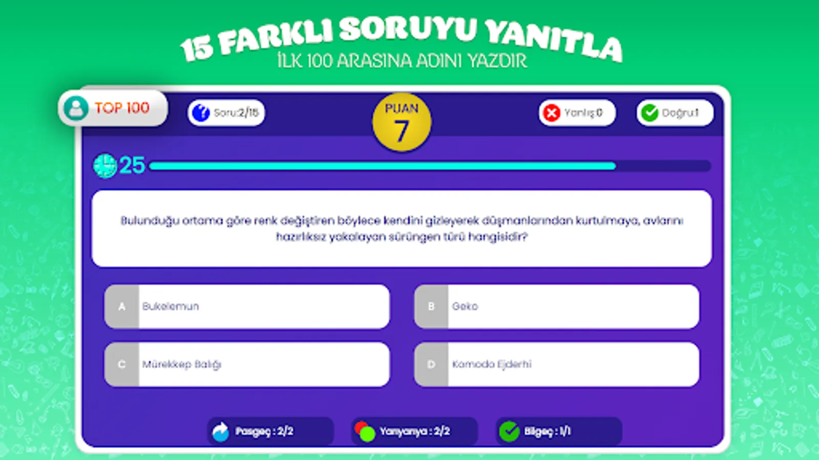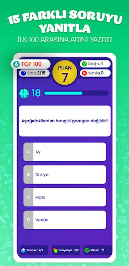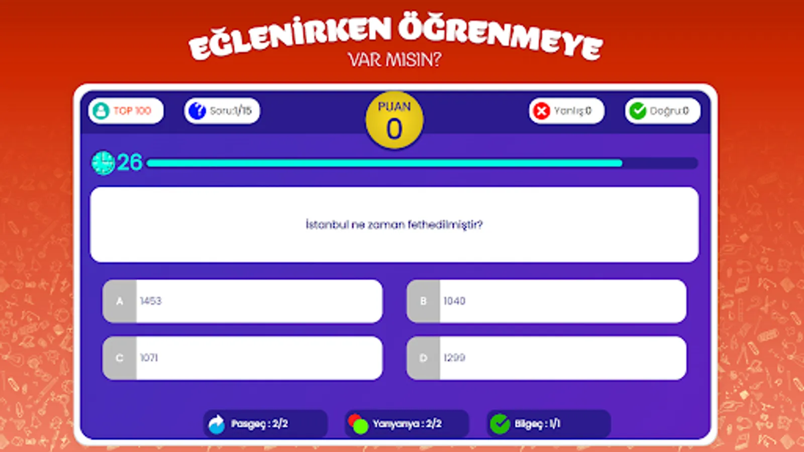 Answer 15 questions in different categories and become one of the highest scorers. Have fun and learn!