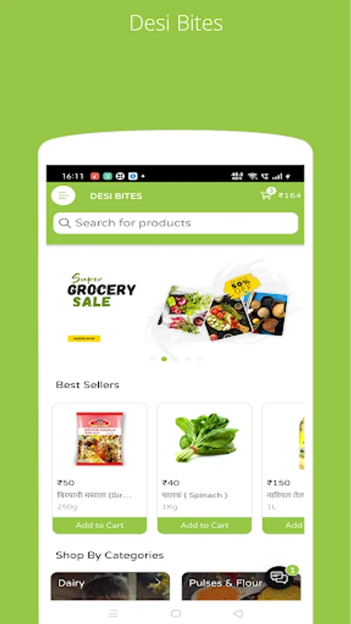 Welcome to Desi Bites, the best online store for all food items. We have something for everyone, be it local treats or healthy superfoods. Our safe and organic ingredients along with clean packaging and delivery makes us reliable and trustworthy. Here is what we offer. Local Foods: Your cravings for local foods might range from tasty namkeen to pav bhaji and samosas. No matter which region you want to savour from, we cater to your tastes. Healthy products: We care deeply for your health, with our superfoods such as amla, apple cider vinegar, aloe vera and bael. Daily spices: Desi Bites has everything you need for your cooking, be it high-quality spices and grounds, or cooking oils and pulses. Download our mobile app to receive a huge range of food items, brilliant discounts and speedy delivery all over India.