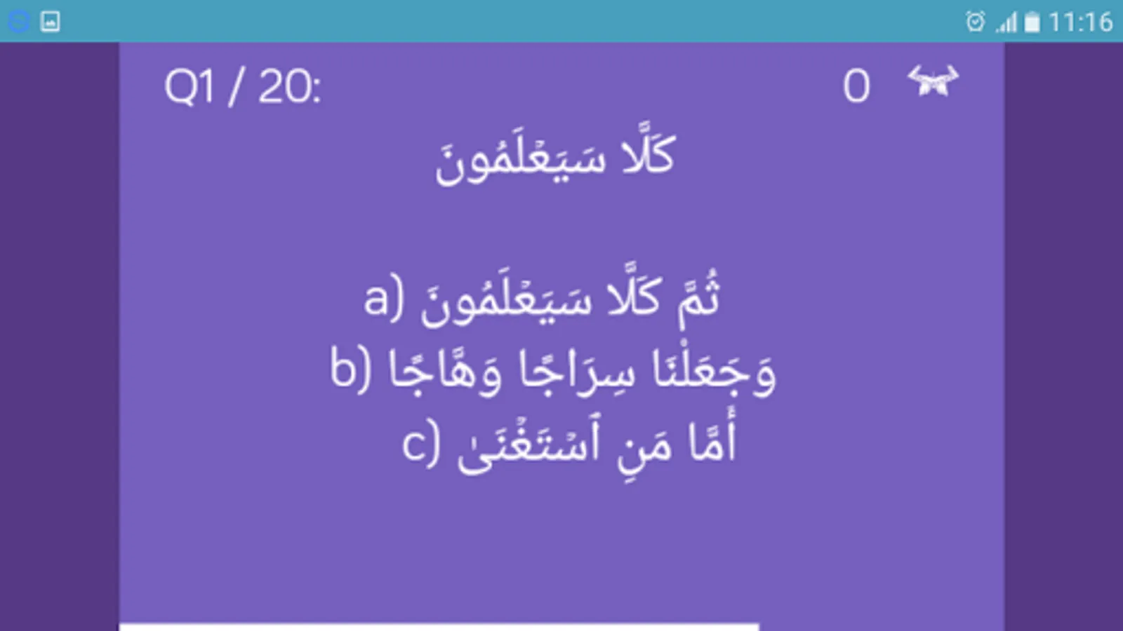 Simple application designed able to use to test your ability to memorize the Koran. With this application, whenever and wherever you can hone your ability to memorize the Koran, and hopefully these applications can benefit us all.