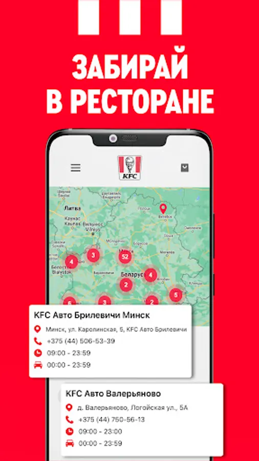 In this application, you will find profitable and up-to-date offers, you can arrange pickup and pay for your order online, you will be the first to learn about new products and promotions of KFC in Belarus. Ordering delicious food is now much easier. You can find the nearest restaurant with delicious chicken. Convenient and fast!