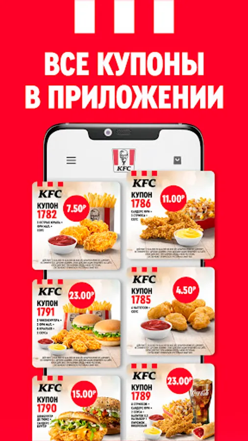 Don't miss promotions and discounts. Choose a coupon and enter its number at the self-service kiosk, call it at the KFC checkout or use it in the pickup app.