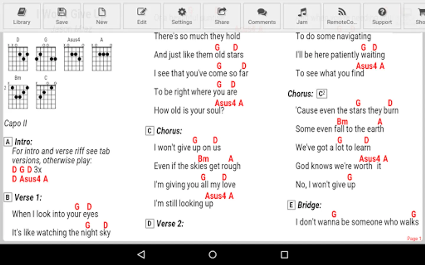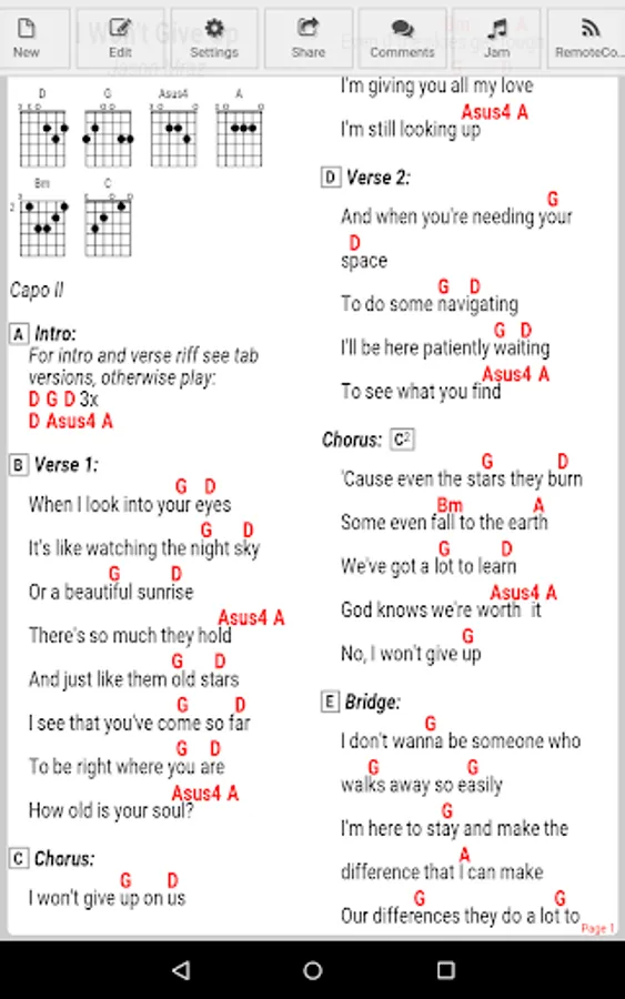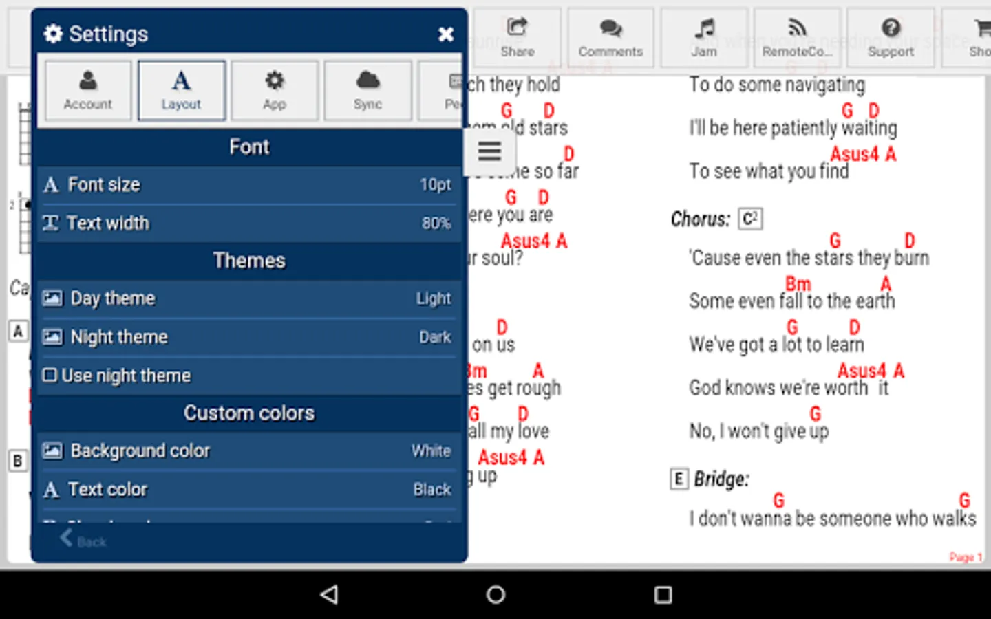 ★ Settings to choose what to display: chords, lyrics, comments, chord diagrams, tablature etc