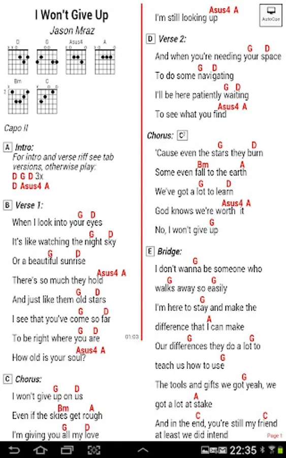 GuitarTapp is the only tab viewer capable of adjusting sheet music to always fit your screen using the innovative IntelliWrap technique. By displaying your songs in multiple columns, it also makes sure the maximum amount of screen real-estate is used.