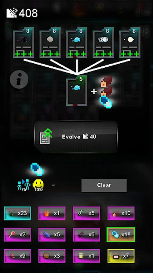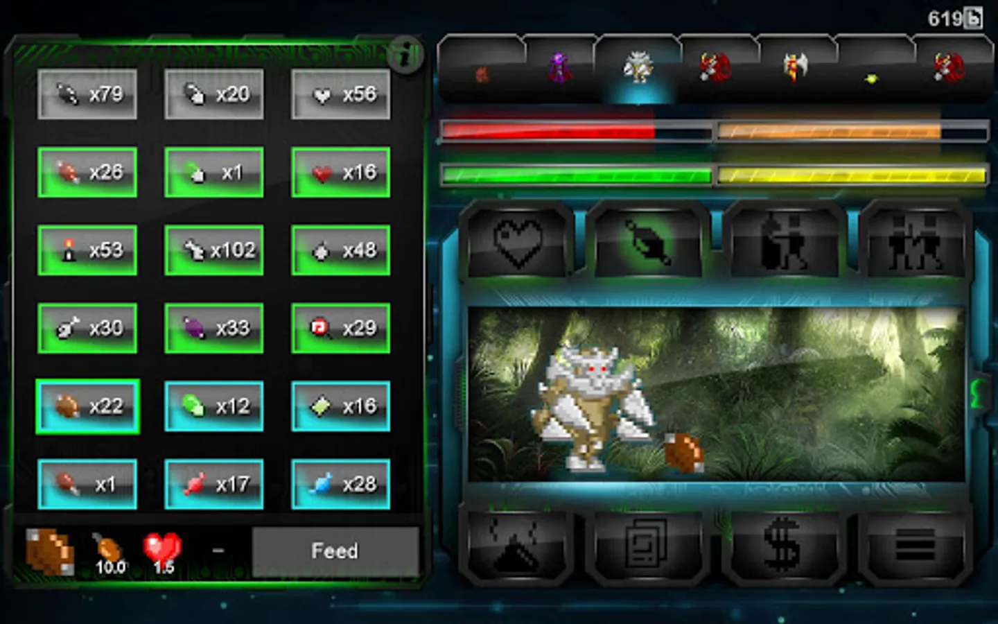 Discover the numerous foods, and environments that influence monster progression. Unlock and collect cards to build your strategy.