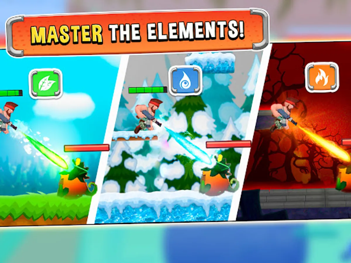 Fire, ice, thunder, poison and more! Aim and use the power of the elements in your favor to power up your shooter gun's offensive strike warfare weapon ammo options and make enemies submit to your elite kill squad action arcade shooting classic game expertise!