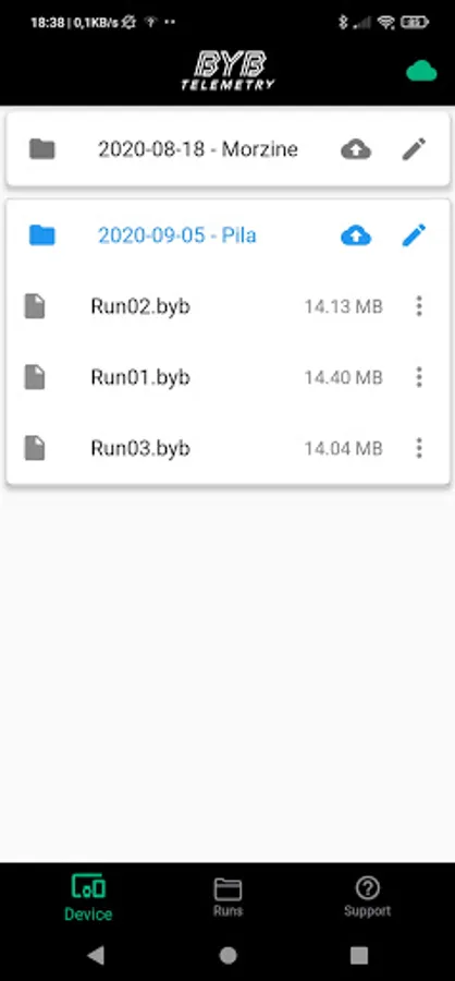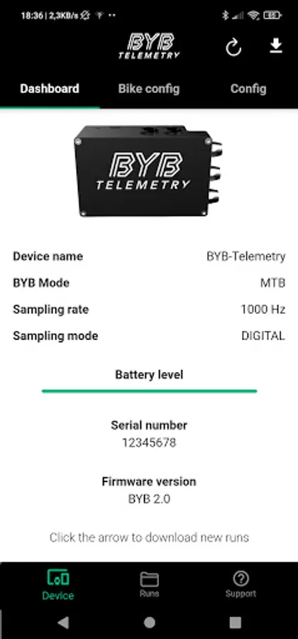 Through this app is possible to manage the settings of the BYB telemetry v2.0 system. It's also possible to download and visualize the acquired data, push them directly to your PC and consult user and software manuals.