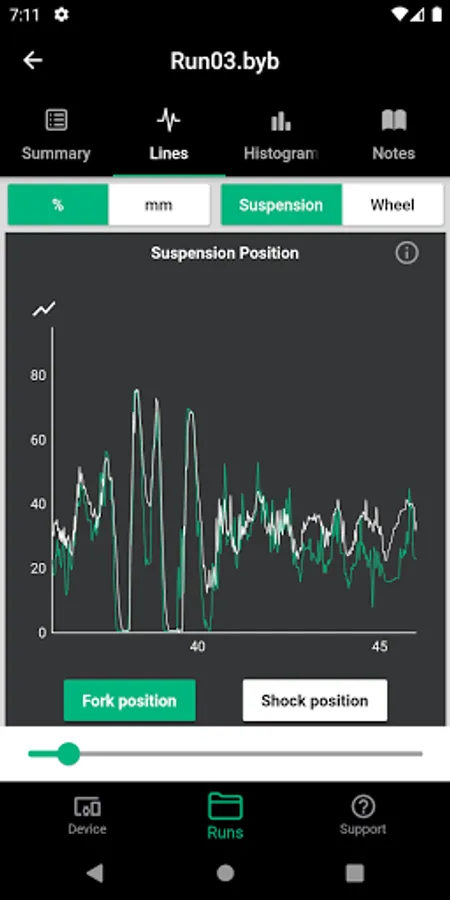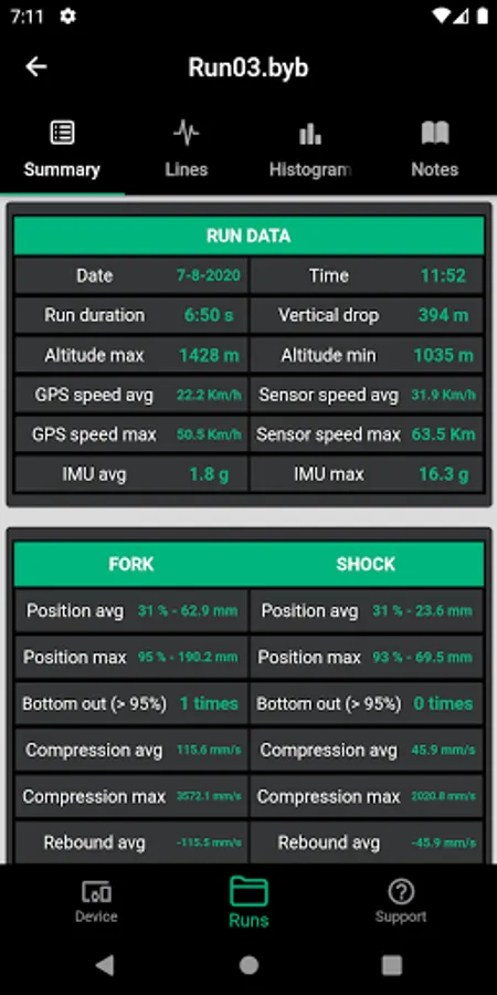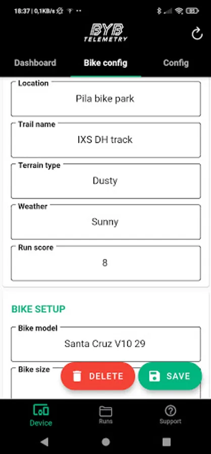 BYB Telemetry detects the motion of your suspension, the brakes usage, the speed and other dynamic parameters while riding.