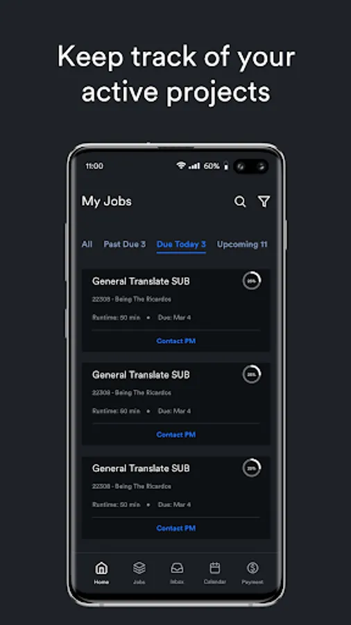 The Deluxe Localization mobile app allows users to view their assigned jobs, accept or decline new jobs offered to them by the project management team and also claim jobs from a self- serve queue. This helps translators and editors save time and claim work on the go without having to login to the main website to access these features.