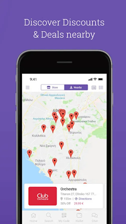 Discover all discounts and offers near you, wherever you are, with the Nearby feature.