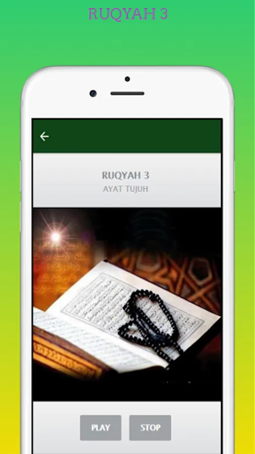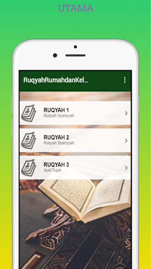 App ini mempunyai tiga jenis bacaan ruqyah yang mana sebagai ikthiar tambahan untuk mereka yang mempunyai masalah melibatkan gangguan makhluk halus .