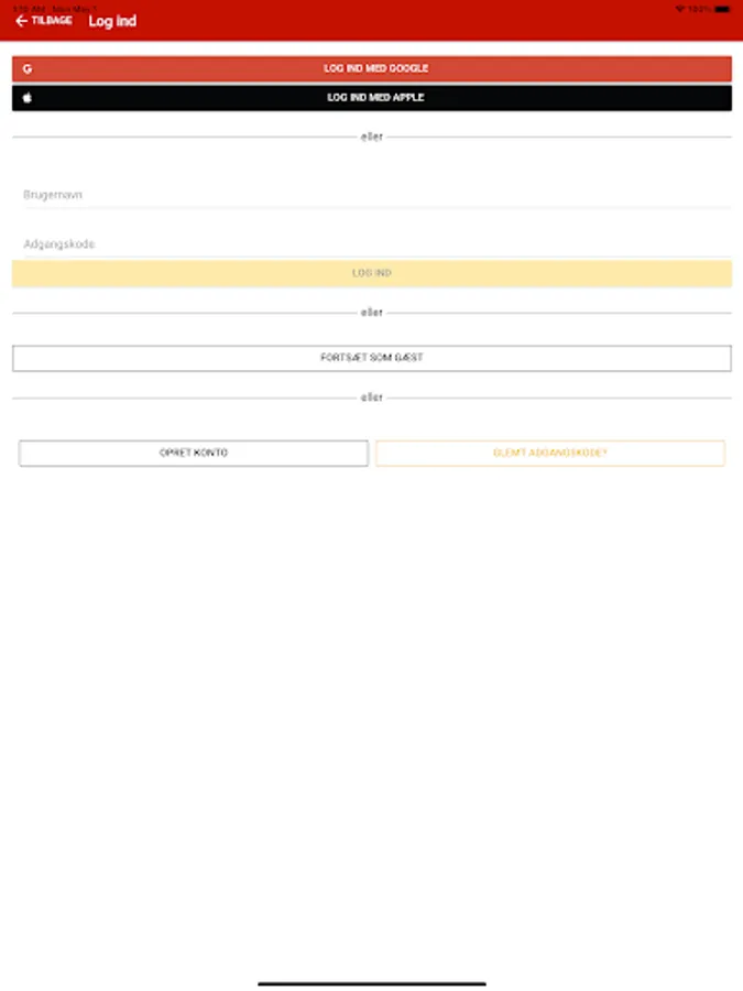 Du kan bruge din eksisterende Byens Kylling / EatOnline brugerprofil, eller som ny kunde oprette dig i appen.