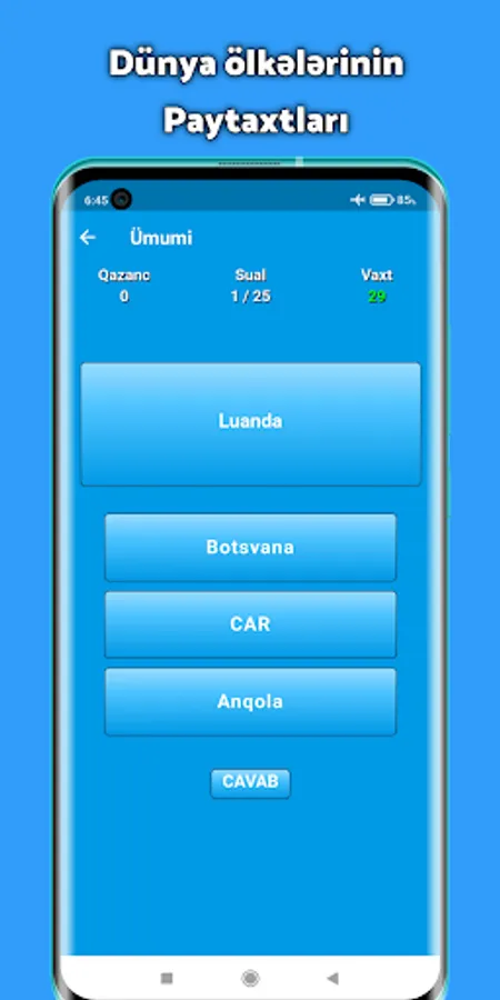 The rules of the game are very simple, you are presented with 25 questions, and the first wrong answer will start again. The game works completely offline. Geography game with you everywhere. Geography Tests Learn with fun.