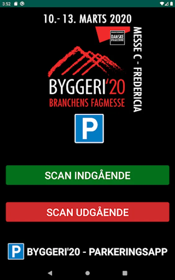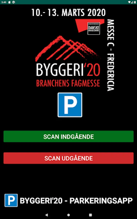 This is an app for scanning parking during BUILDING'20, MESSEC Fredericia.