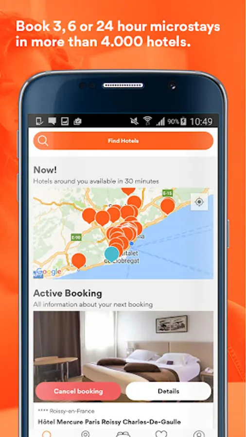 The BYHOURS app is the key to more than 4000 hotels booking for 3, 6 or 24 hours. In our hotels, you can choose the check-in time during the day or night and pay only for the time you need. With your booking, you can enjoy all the services included in the hotel with immediate confirmation and free cancellation.