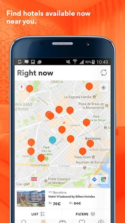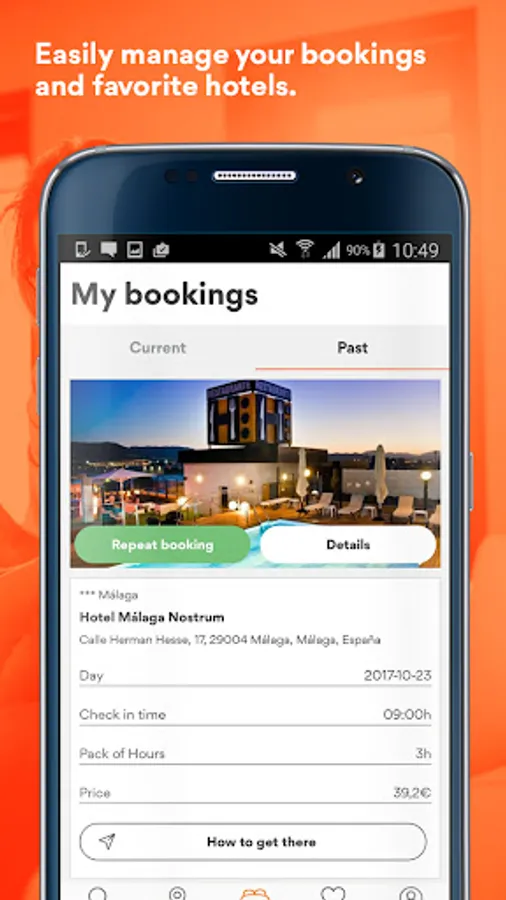 In three simple steps, you can book rooms by the hour in 3, 4 and 5-star hotels worldwide. In the BYHOURS app, you will find independent hotels and the best chains: Sheraton, Hilton, Starwood, Melia, Silken, Best Western, Hyatt, Barceló, Sercotel, Holiday Inn, Iberostar, NH and many more.