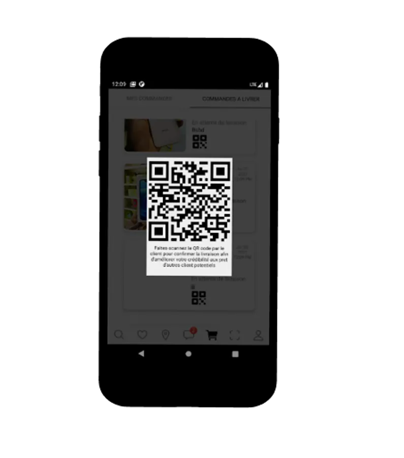 The application integrates a very easy to use system which allows to validate the delivery of orders by a simple gesture which consists in scanning a QR code of the order in order to validate the delivery in complete safety to allow the sellers to be referenced in application to clients