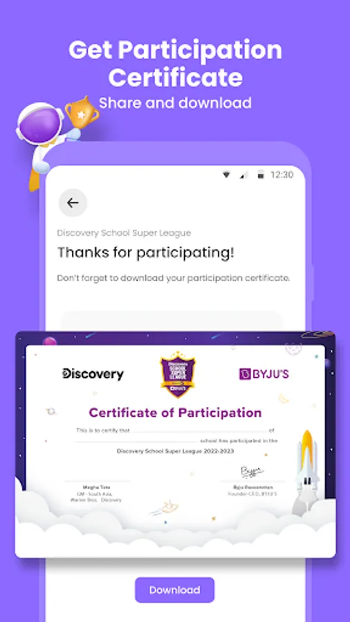 Immediate access to the Discovery / BYJU’S certificate