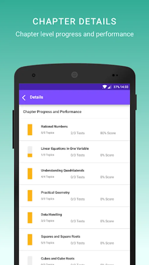 1. In-depth progress for each subject at the chapter level. This helps parents have a better study plan for their child and focus on the chapters that are lacking.