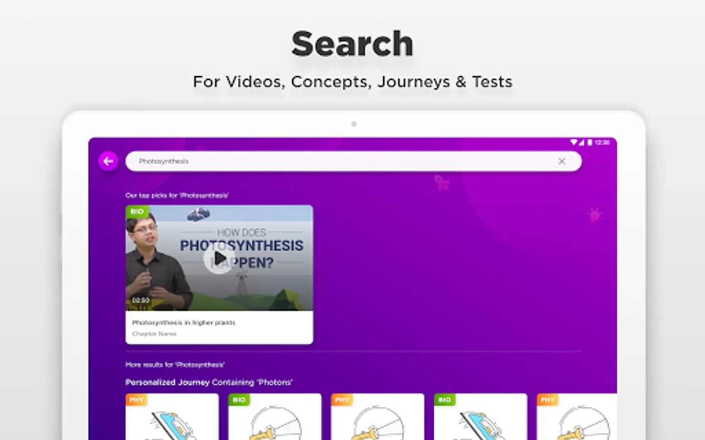 For exams and beyond - The modules are planned in a way that it provides complete coverage of all state-level Boards, ICSE and CBSE syllabus for classes 6-10 and complete IIT JEE and NEET Preparation for classes 11-12.