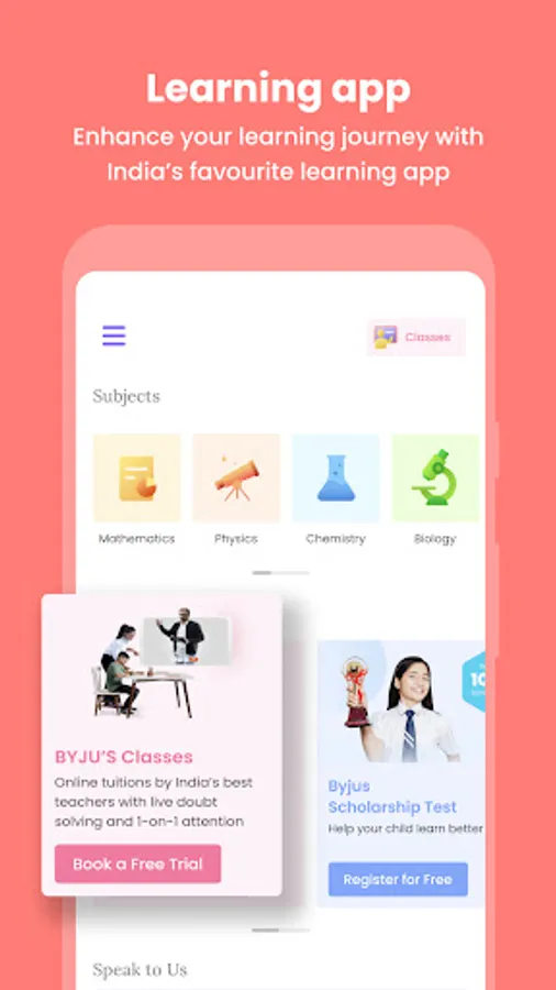 Every class is designed to help students learn, solve doubts, practise & revise. Students of BYJU’S Classes have FREE access to video lessons and practice & revision exercises on BYJU’S – The Learning App. You can also make new friends in the LIVE classroom, be a part of virtual discussions & enjoy your learning journey on this online classes app!