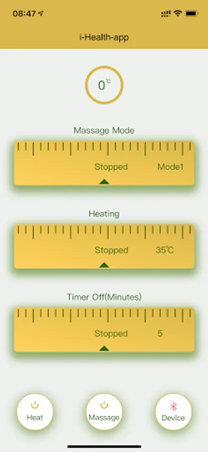 i-health-app can connect intelligent massager by Bluetooth BLE , control temperature, add timer and adjust vibration gear and other parameters