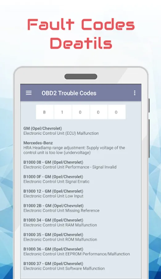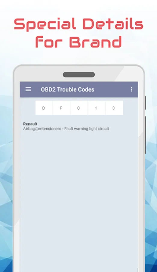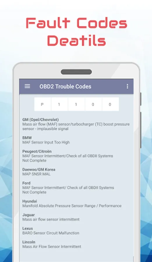This app is mobile software with offline OBD2 (EOBD) fault code definitions.