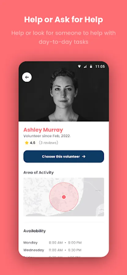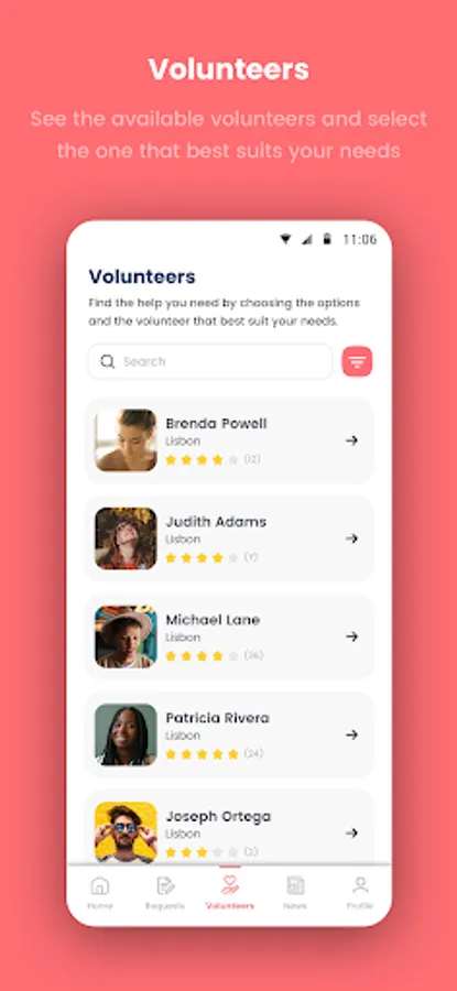 - Choose who can help you: Access a list of available volunteers and select the one that best suits your needs