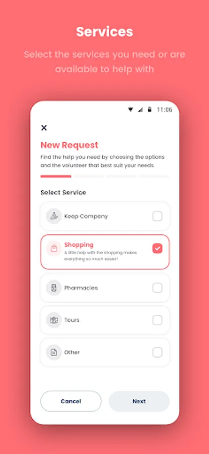 - Select the Services: Select the services you need or are available to help with and access the list of required services to stay organized.