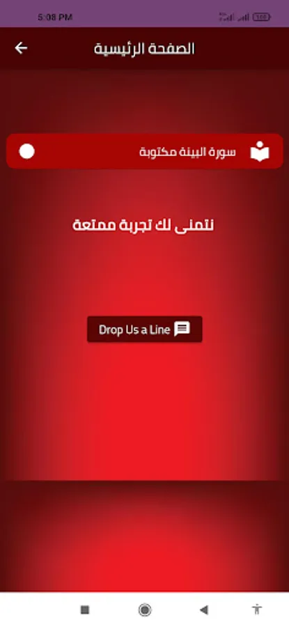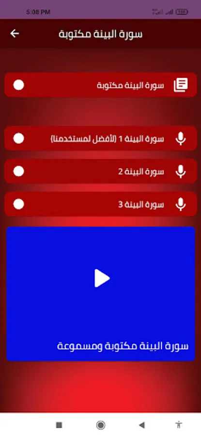 يمكنك التنقل بين أزرار تطبيق سورة البينة مكتوبة بسهولة