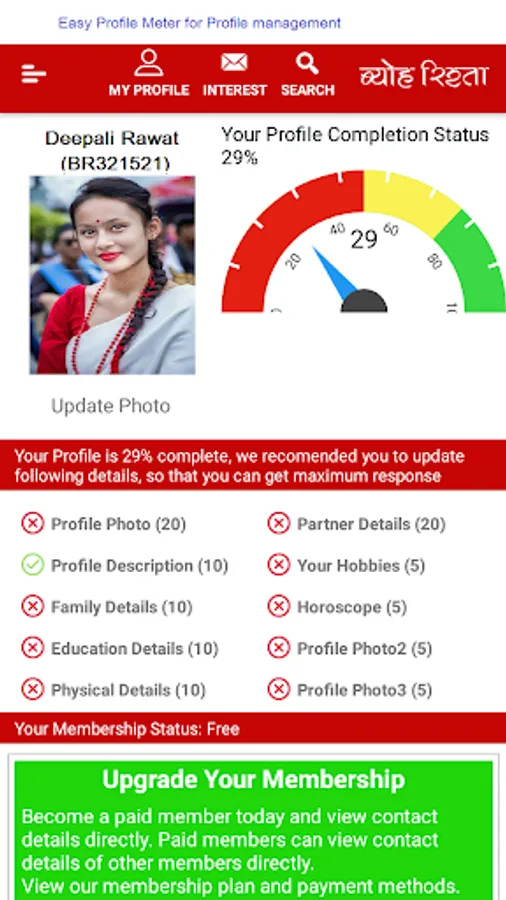 2. Update profile details like age, occupation, education, physical status, contact details etc.
