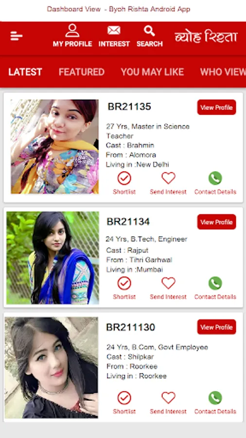Download free today and choose your suitable life partner among the thousands of profiles.Byoh Rishta is fastest emerging solution for