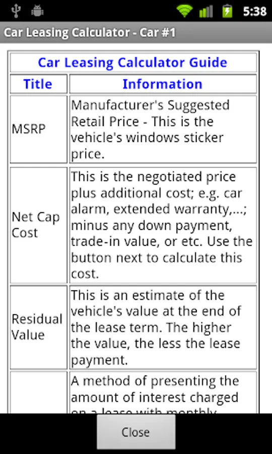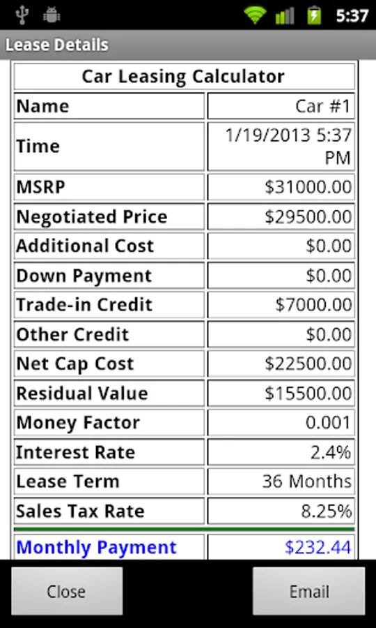 Please try the free version "Car Lease Calculator Free" to make sure it works with your expectation before purchase the paid version.