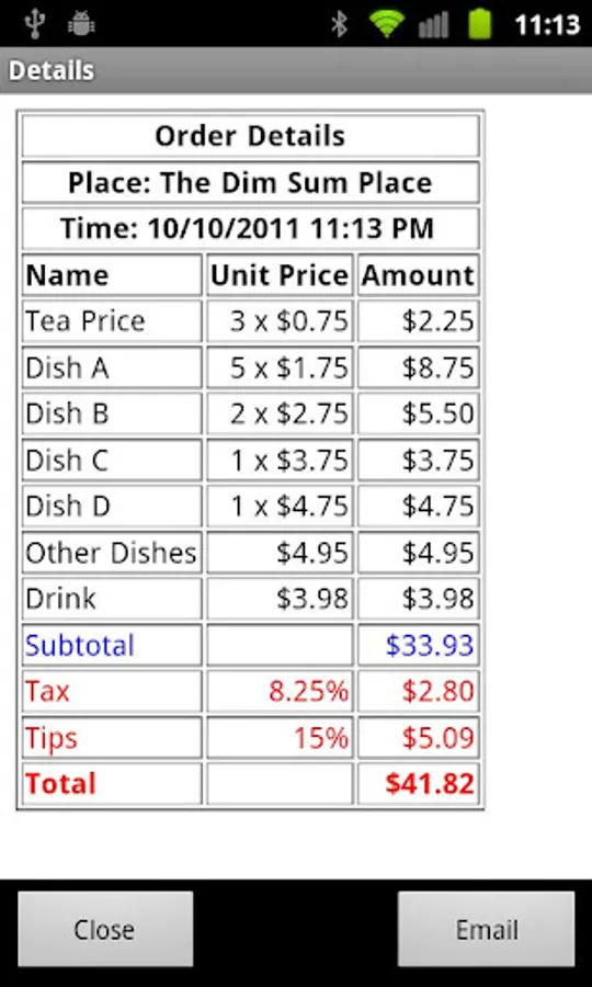 - Can view breakdown details of the bill and emails that to friends and/or yourself.