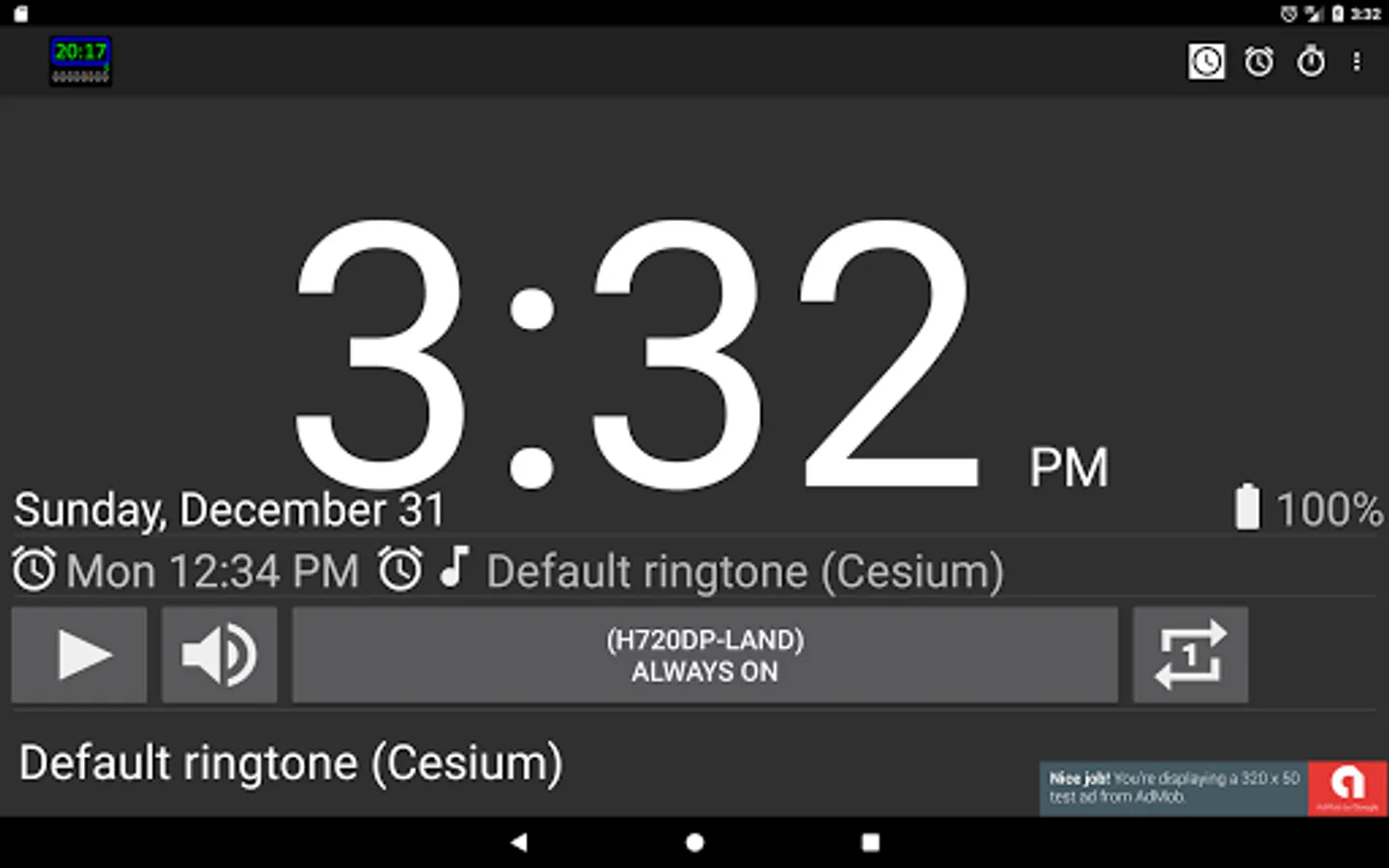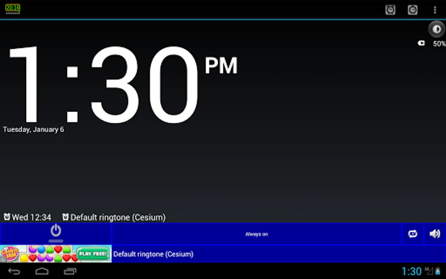- Screensaver: Shows time, date, alarm, alarm signal and player signal.