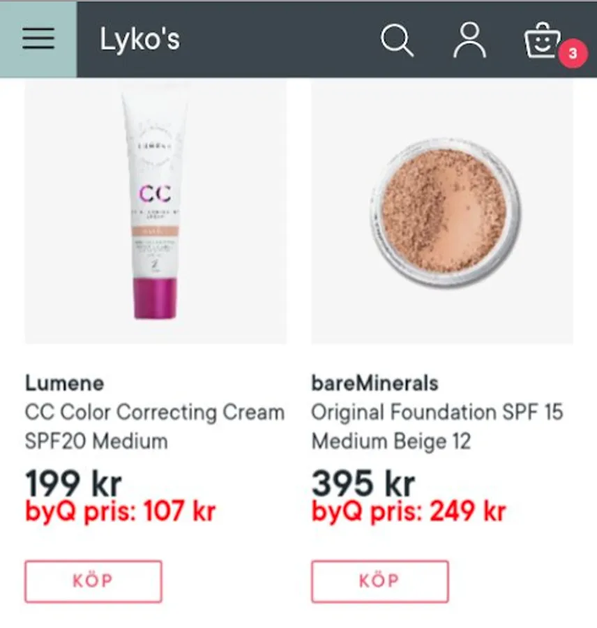 byQ price comparison directly in store at Lyko's and makes it easy to order the products at the best price from the cheapest stores.