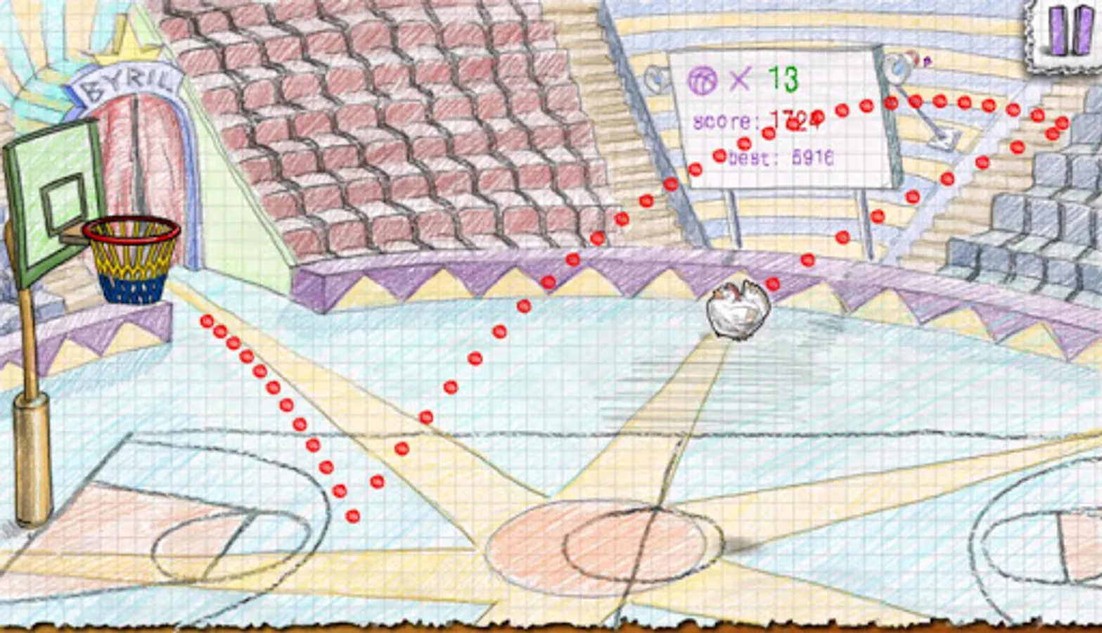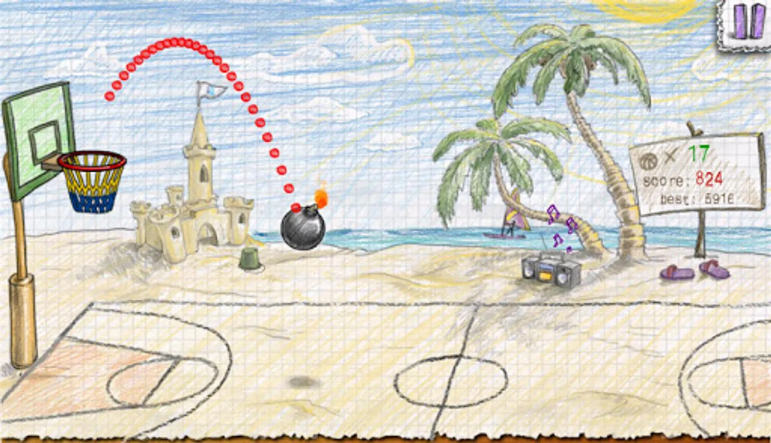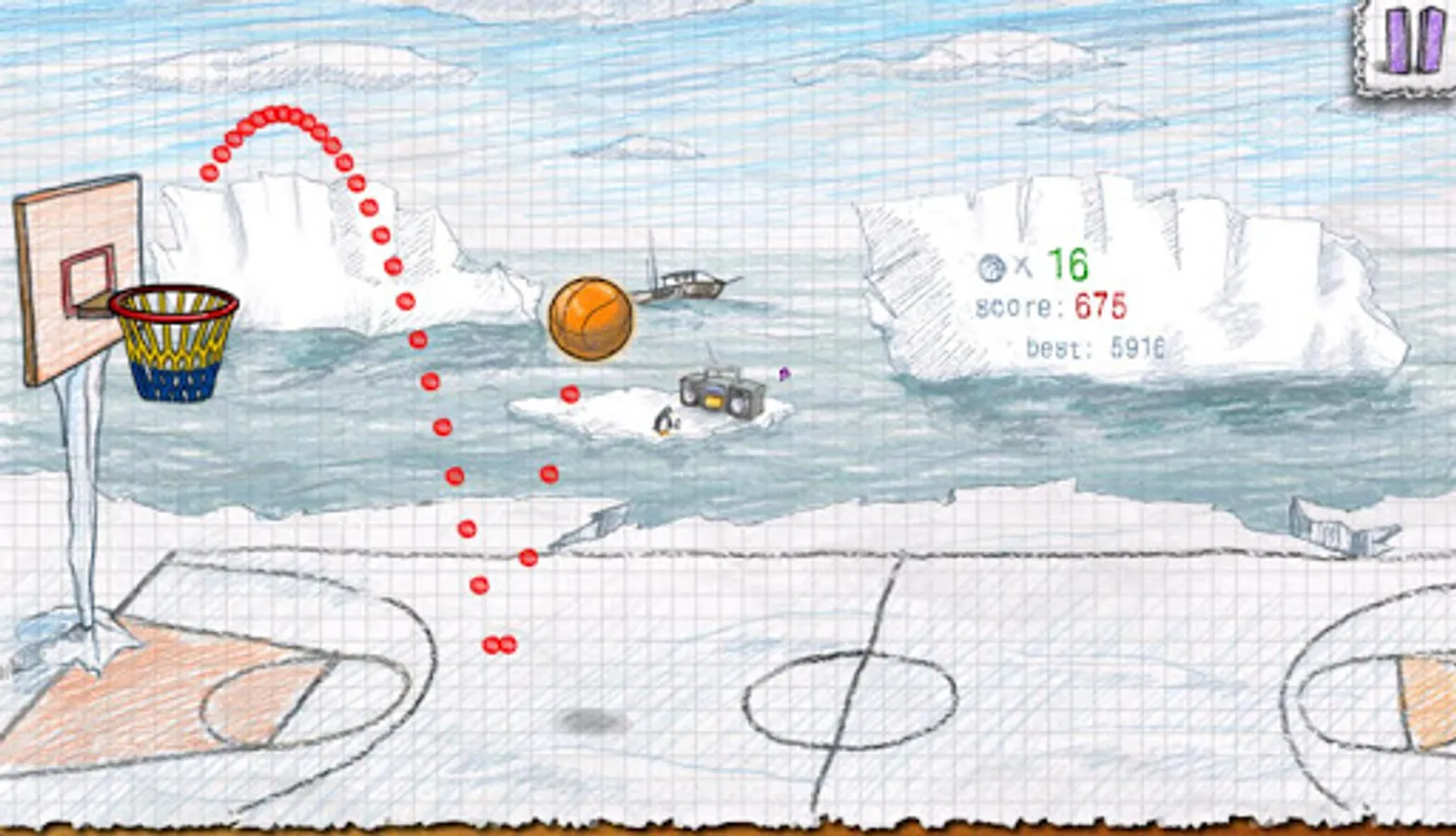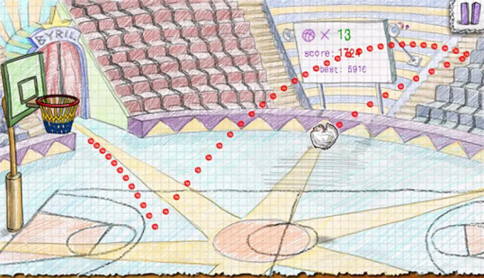 Doodle Basketball 2 is a sequel of an exciting game with fine graphics and lifelike physics. Play Basketball on a sheet of paper and enjoy the ingenuity and unforgettable atmosphere. Your aim is to gain the maximum points playing with the limited number of balls. Shoot the ball through the basket without it touching the rim and gain additional balls. The more you score, the more various bonuses you get. Score and open up new balls.