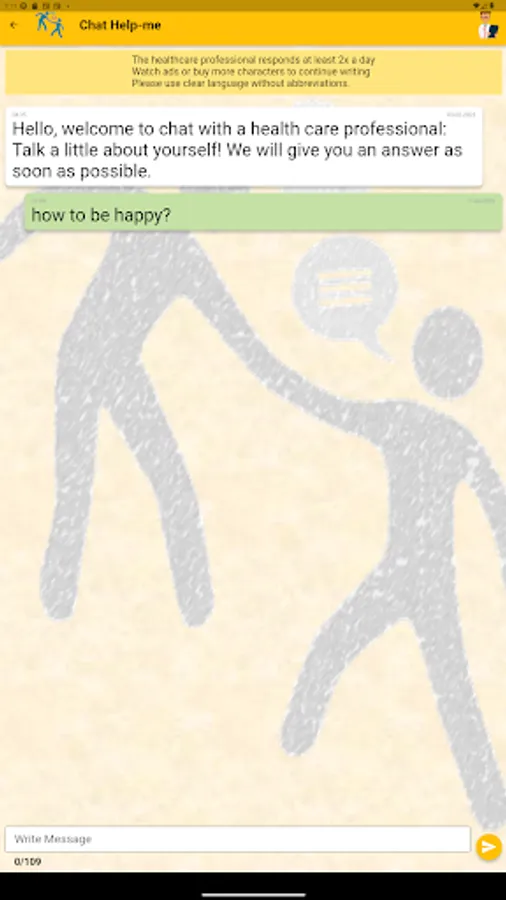 The robot answers all questions and the health professional, will give you a help with emotional disorders such as depression, anxiety, stress, emotional dependence, etc.